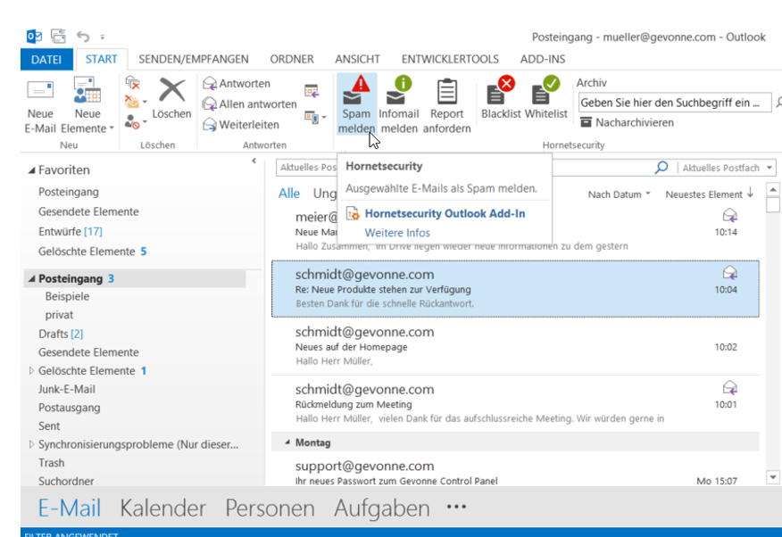Bei den whd.global hatten Sandra und ich die Gelegenheit, mal wieder mit Oliver und Daniel von HORNETSECURITY zu sprechen. Dabei haben wir ein paar Neuigkeiten erfahren, die wir Euch nicht vorenthalten möchten. HORNETSECURITY arbeitet derzeit mit Hochdruck an einem Outlook-Plugin. Da gefühlt 130 % der E-Mailnutzer diese Software nutzen, ist das ein verständlicher Schritt, den wir toll finden (klar: unsere Zimbra- und Cloud-Office-User nutzen zum Teil auch Outlook).
